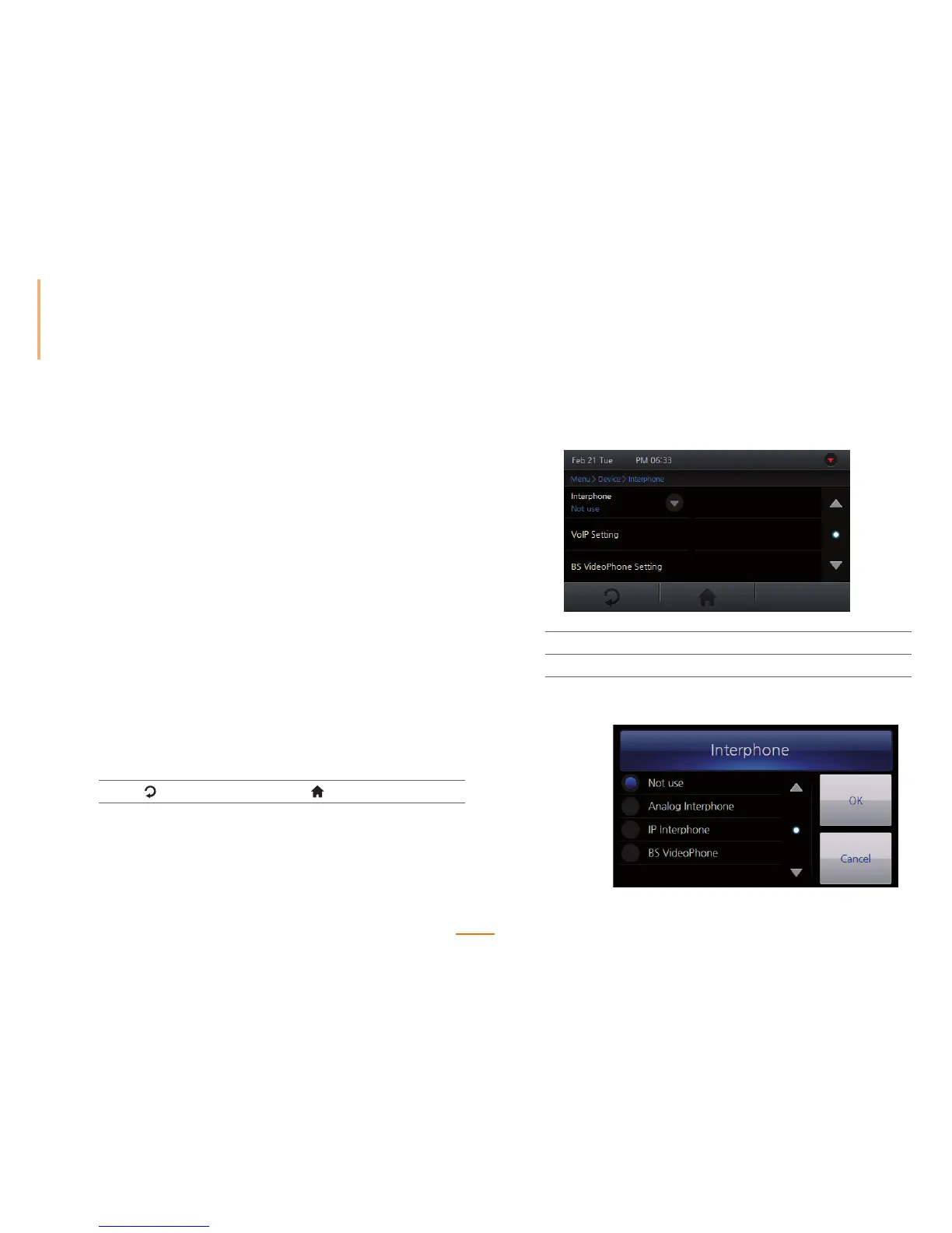 Interphone Select the desired interphone type and press OK.