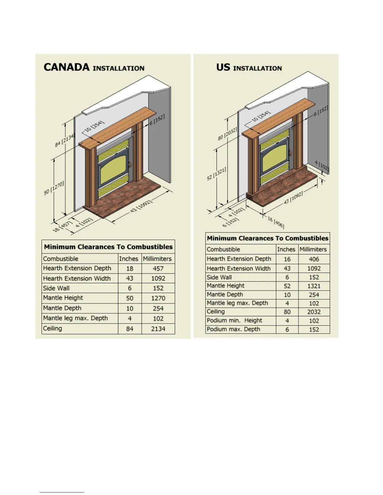 CLEARANCES TO COMBUSTIBLES