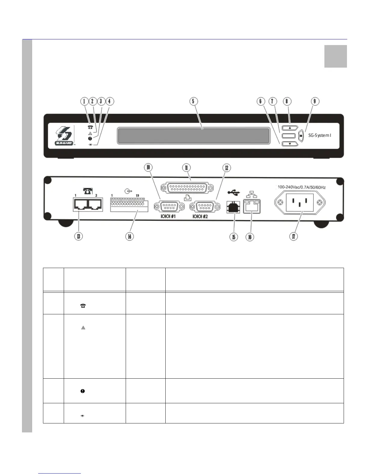 Table 3: SG-System I Front and Rear Panel Descriptions