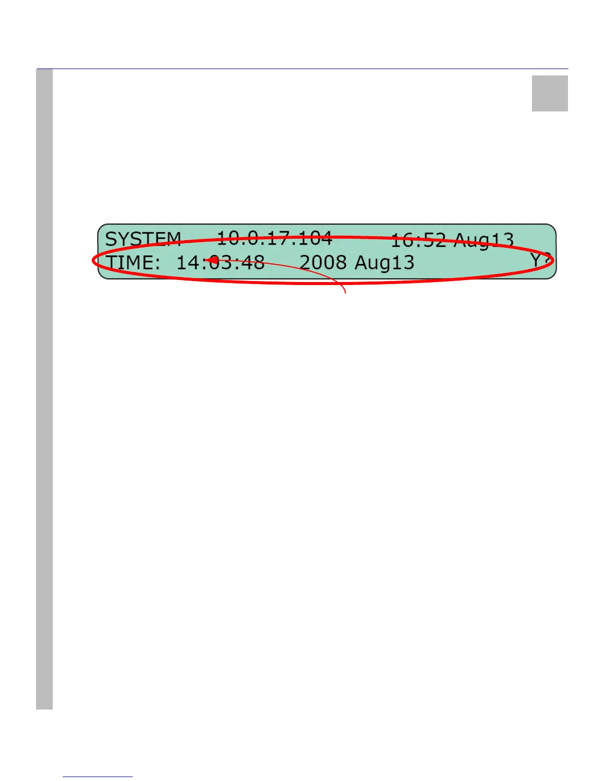 Selecting Y? for yes will default the system; selecting N? for no will leave system settings as they are. Either of the Up and Down buttons