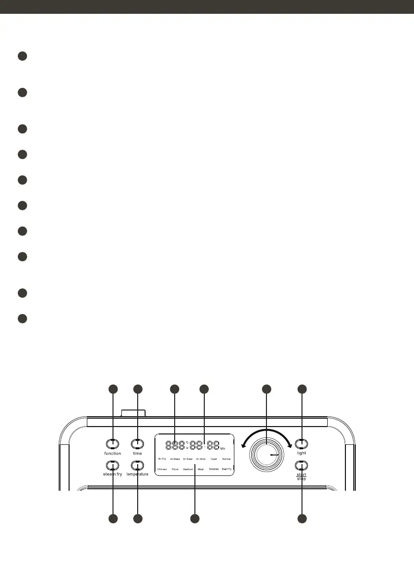 Use this button to select the desired cooking function. Press the button and rotate the knob to choose the function you