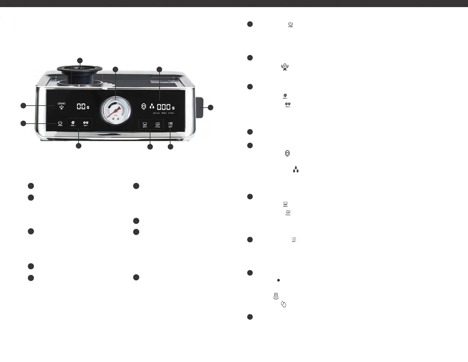 Press the power button to turn ON/OFF the espresso machine. When the espresso machine is turned