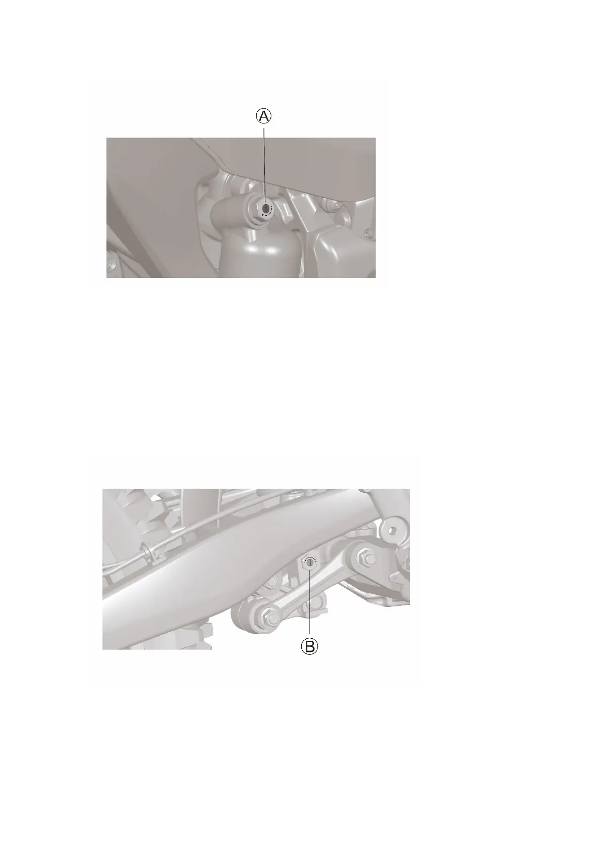• Turn the rebound adjusting screw ○B clockwise in the "+" direction to reduce the rebound