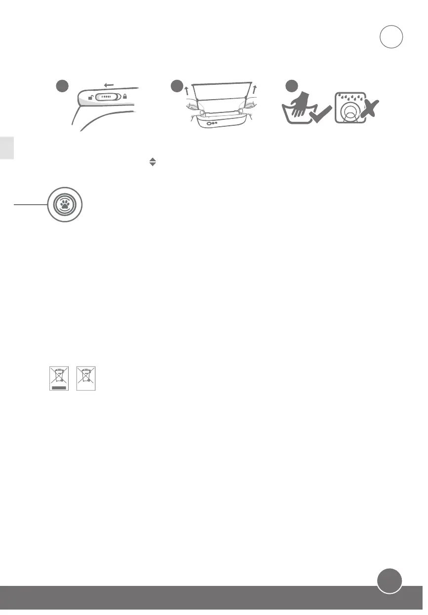 Deve limpar o comedouro com um pano húmido ou toalhetes de limpeza.
