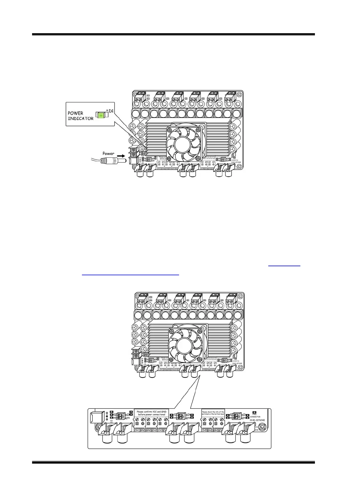 This amplifier has 1 power LED indicator which is marked as “Power Indicator