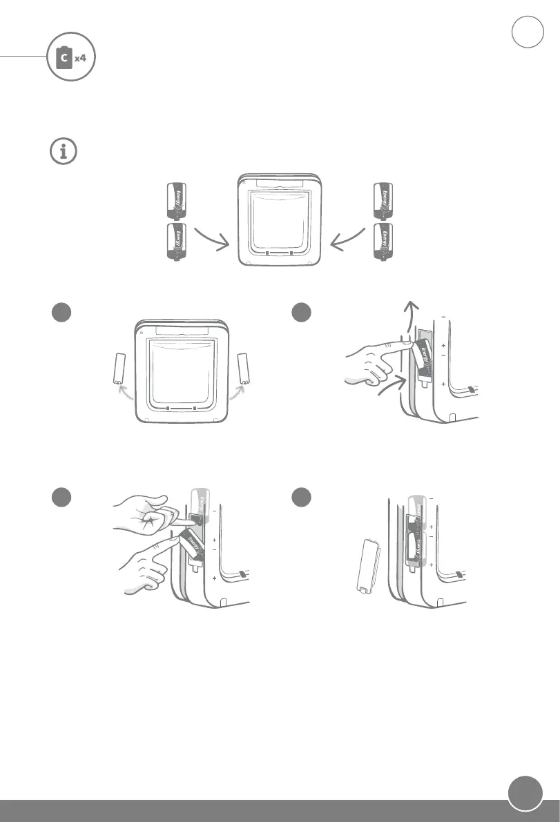 Evcil hayvan kapısı, ürünün her iki yanında 1 adet olmak üzere 2 pil bölmesine sahiptir.