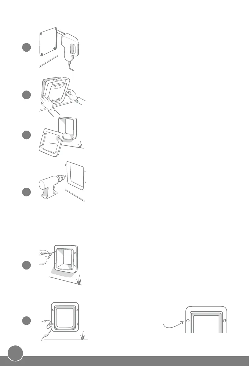 Remova a porta para pets da abertura e faça os quatro orifí-
