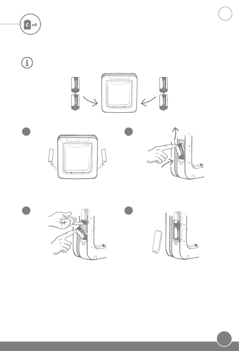 Dvířka pro domácí mazlíčky mají 2 prostory pro baterie, 1 na každé straně výrobku.