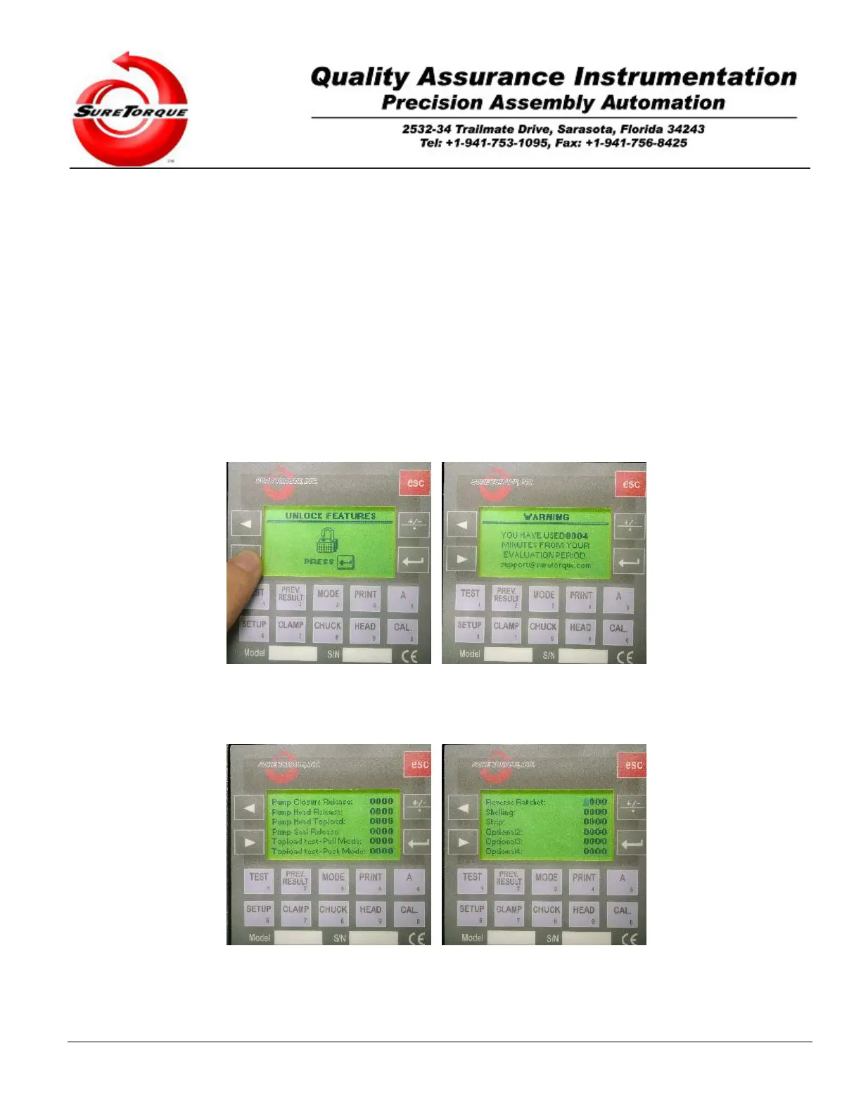 common optional features of the torque tester. In the evaluation period the unlock submenu will not function, because