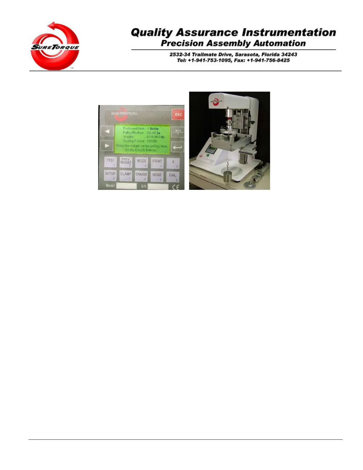 pulleys to test the unit for linearity. (Use the +/- button to check the applied/release calibrations)