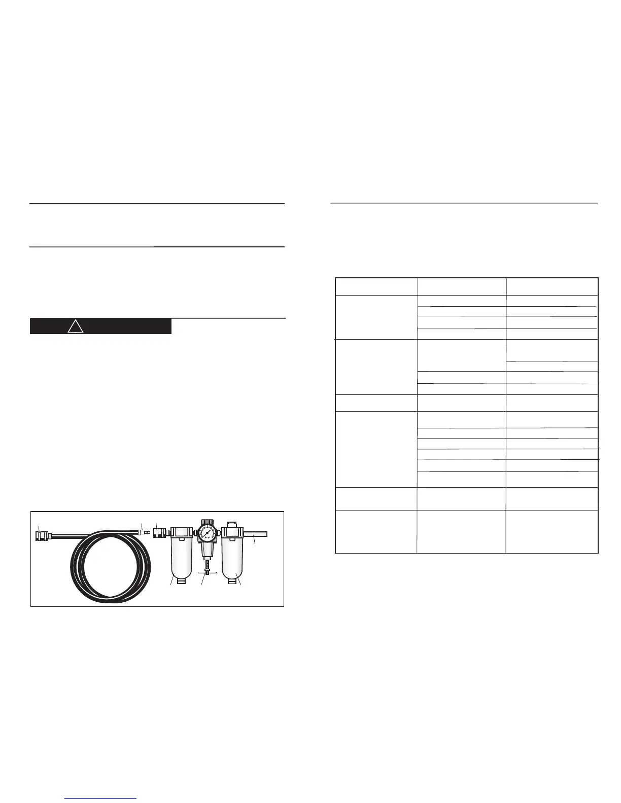 psi. It is preferable to include an air filter, pressure regulator, and automatic oiler within 15 feet