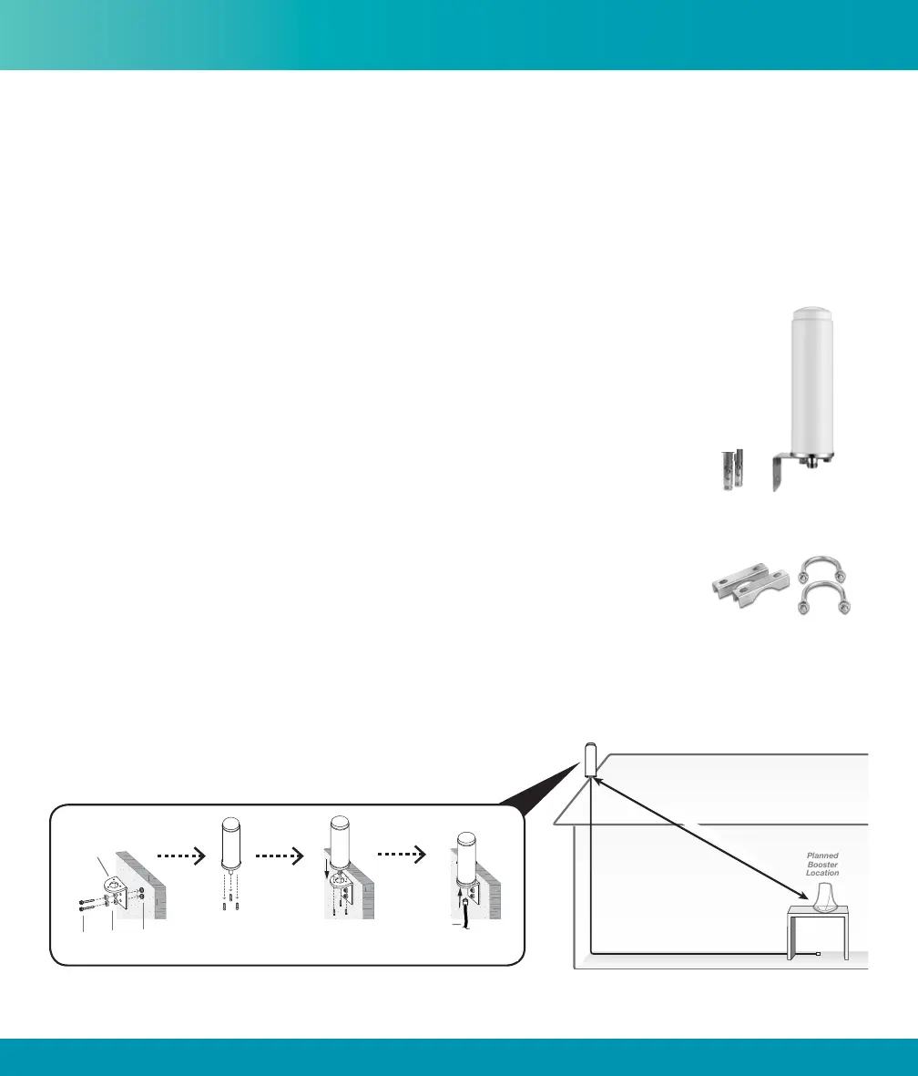 Using the provided hardware, mount the outside antenna at the highest possible elevation, allowing a minimum