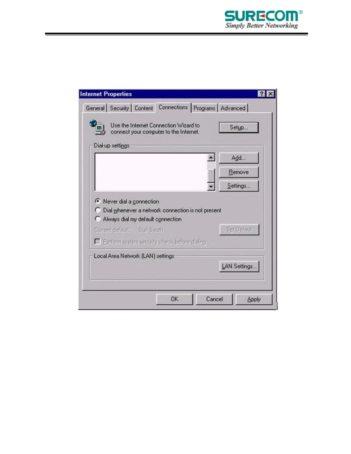 2. In the “Internet Options” window click the “Connections” tab. Then click the “LAN Settings”