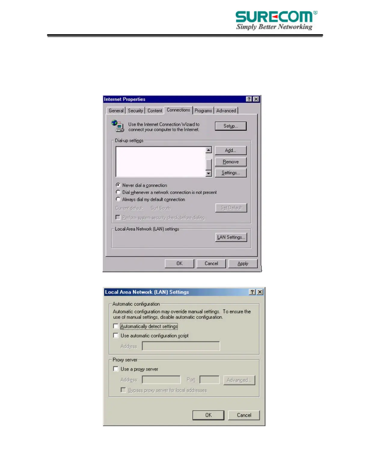 2. In the “Internet Options” window click the “Connections” tab. Then click the “LAN