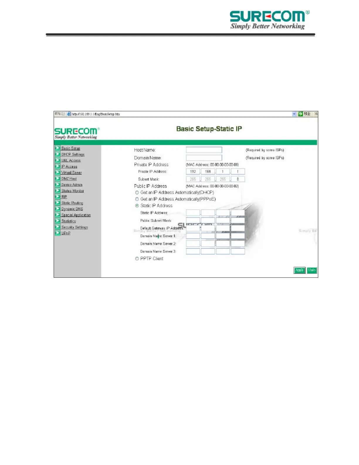 “Basic Setup”. You can set up your connection type to your ISP. When finishing setting, click