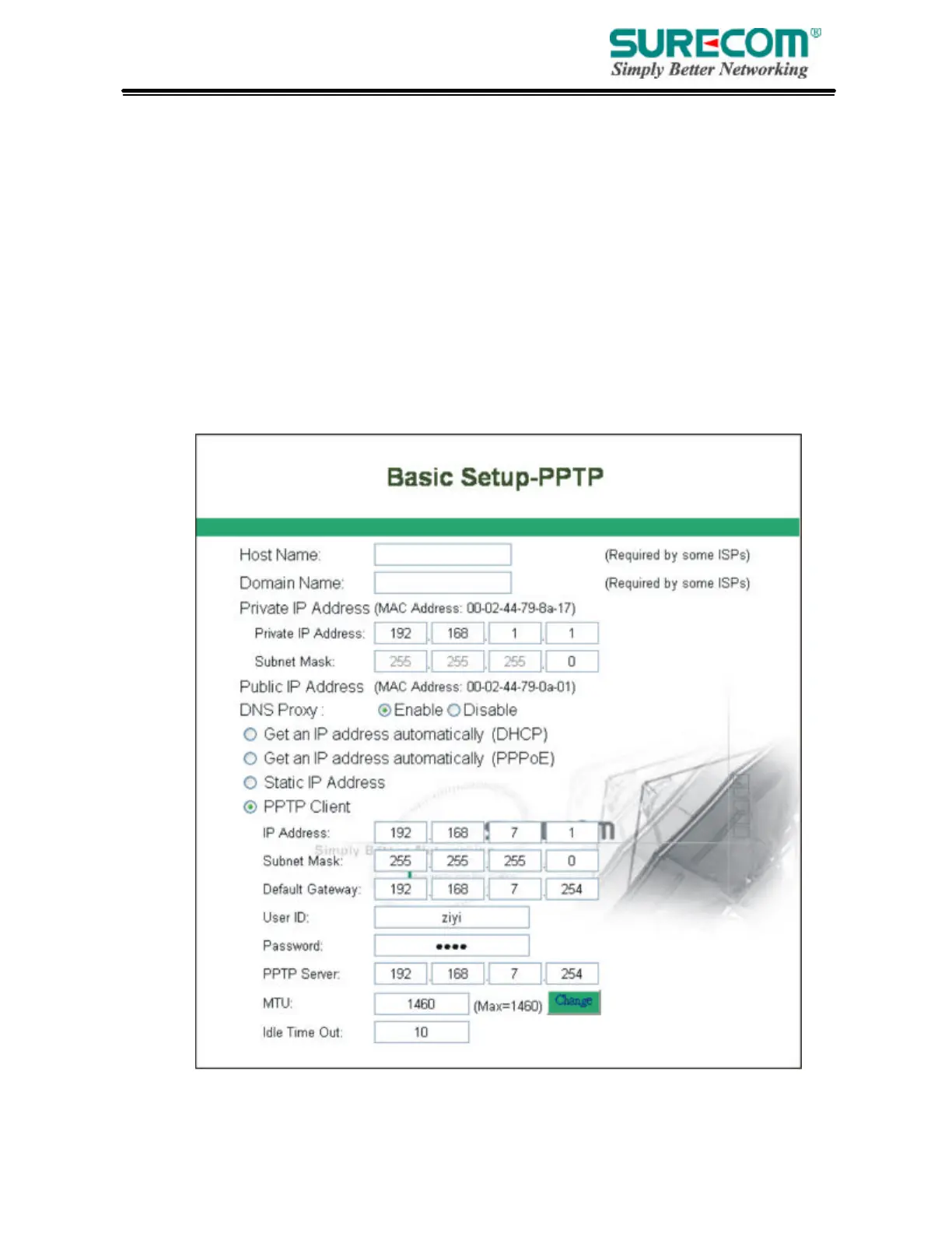 PPTP Server: Enter the PPTP Server Address provided by your ISP.