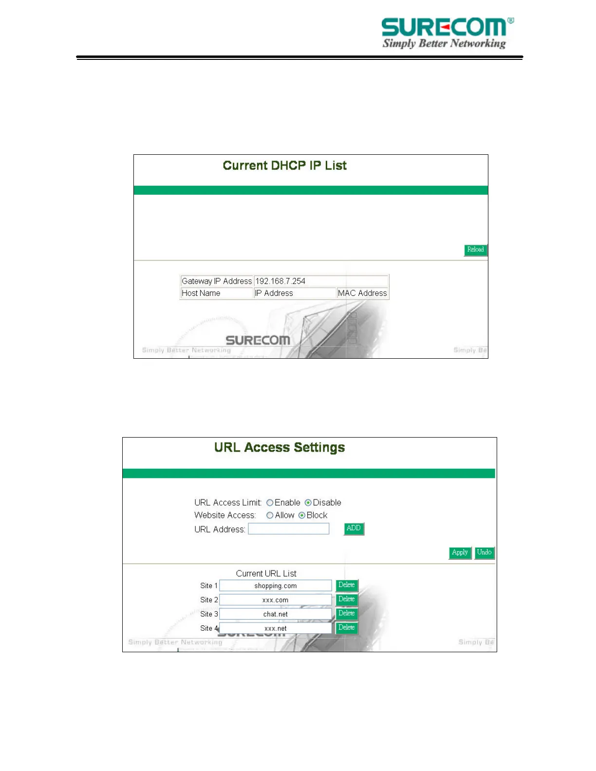 the IP Address and MAC Address of networked computers connected to the Router. Click “Reload” to
