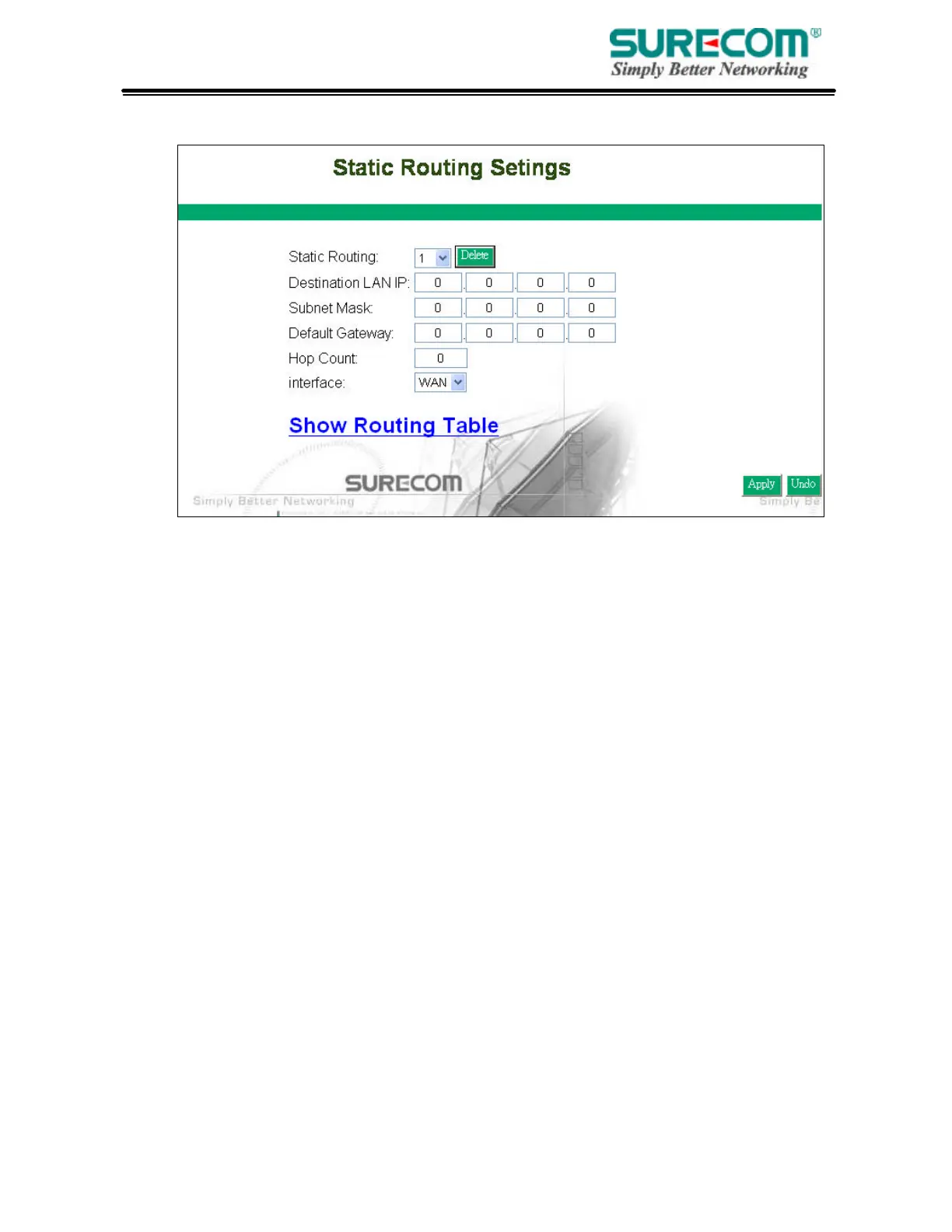 • Static Routing: Select the route entry number from 1 to 20 that you want to configure.