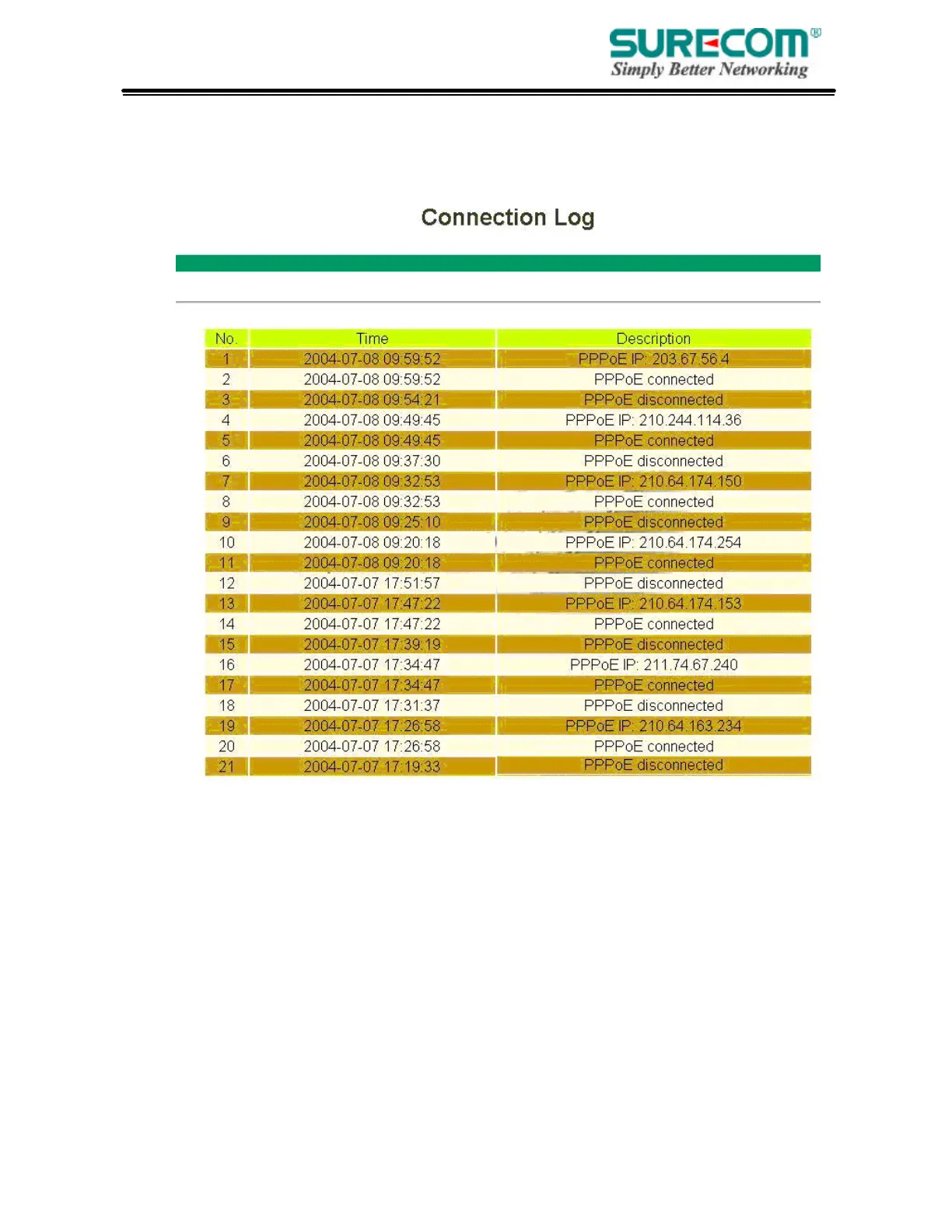 This table displays the connection history of PPPoE and DHCP. You can click “Reload” to get the latest