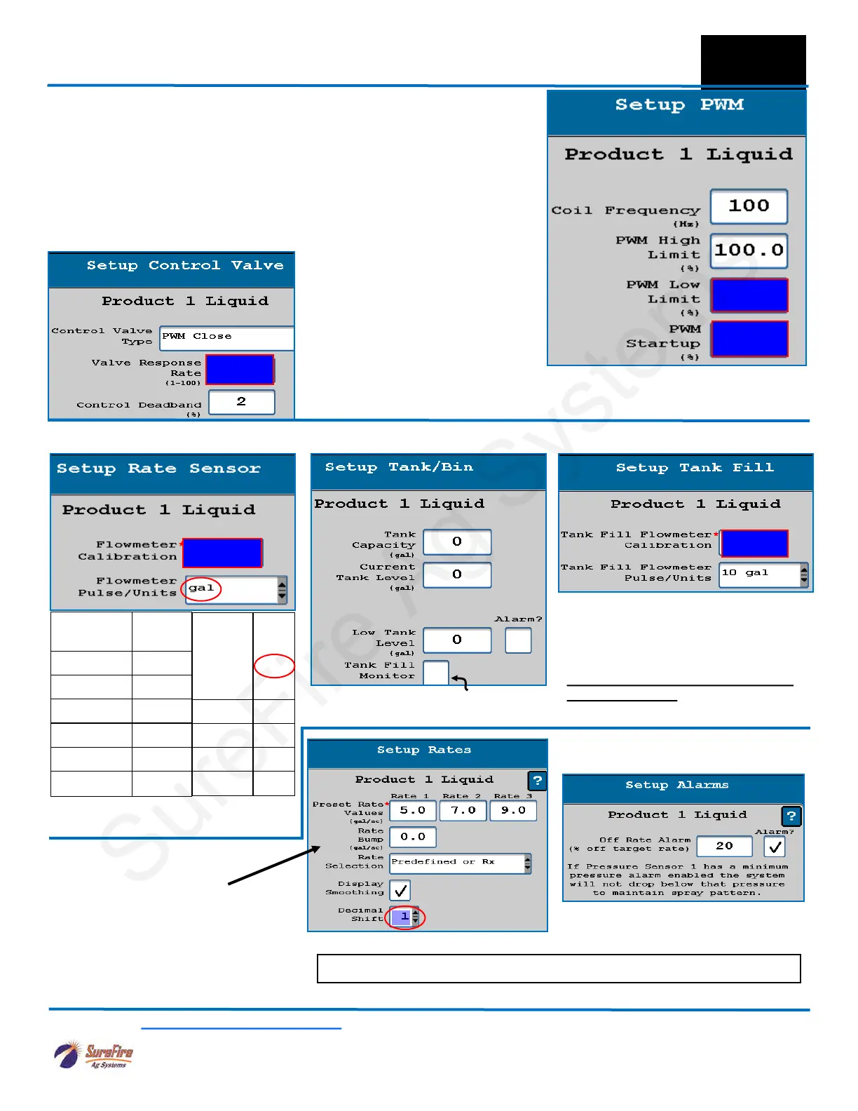 11. Enter appropriate Flowmeter Cal. 12(a). Tank and Fill Flowmeter setup 12(b). Fill Flowmeter Cal setup