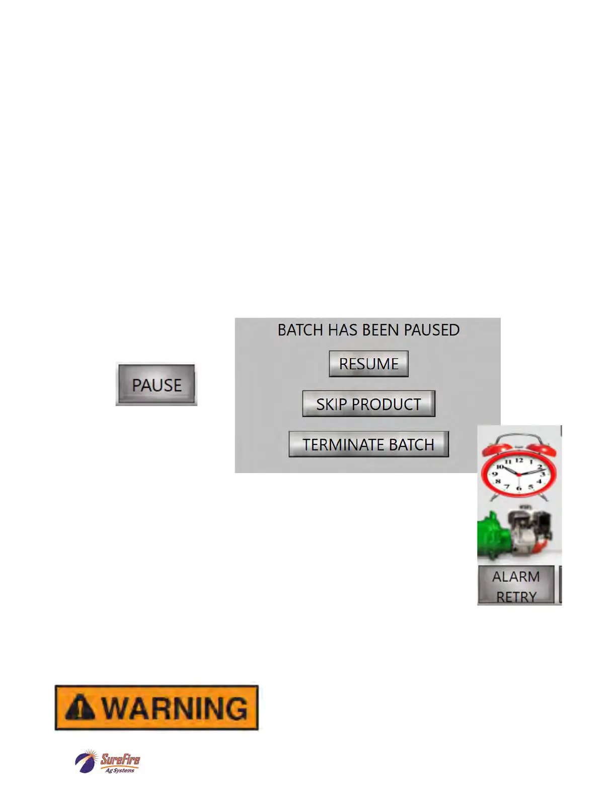 PAUSE. Once the batch is active, pushing the PAUSE will put the process into a paused state. The