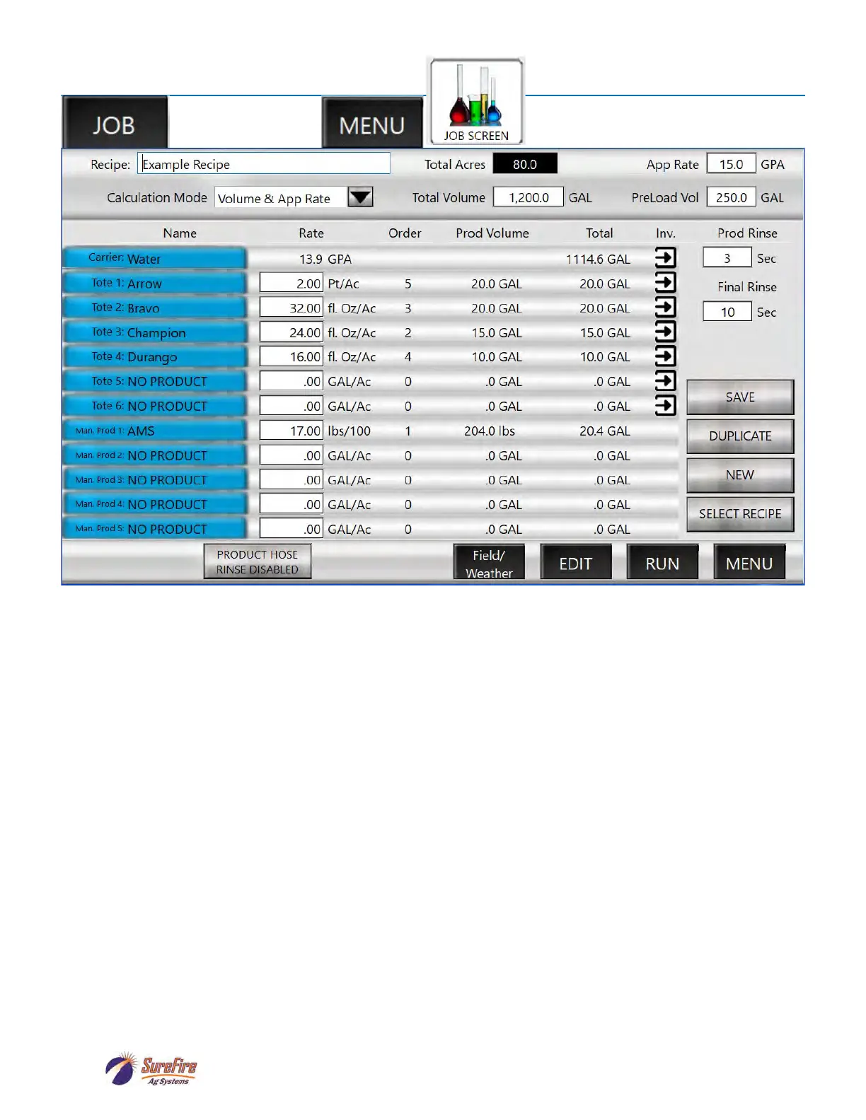 3. Depending on Calculation Mode, enter the Total Acres, App Rate, and/or Total Volume for the batch.