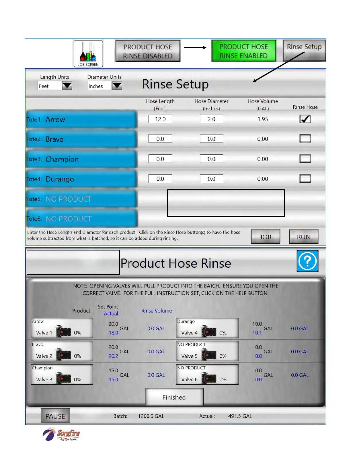 check the Rinse Hose box so the chemical
