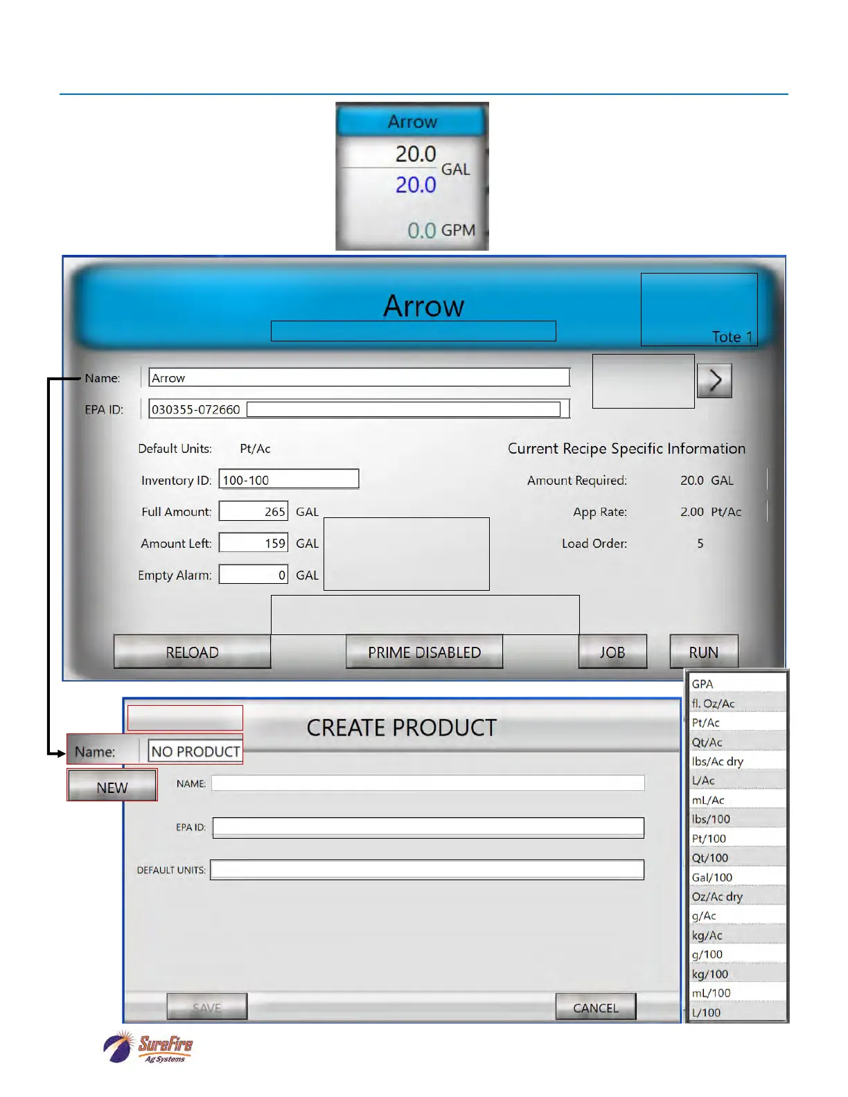 Tote Setup Screen (Product Setup)