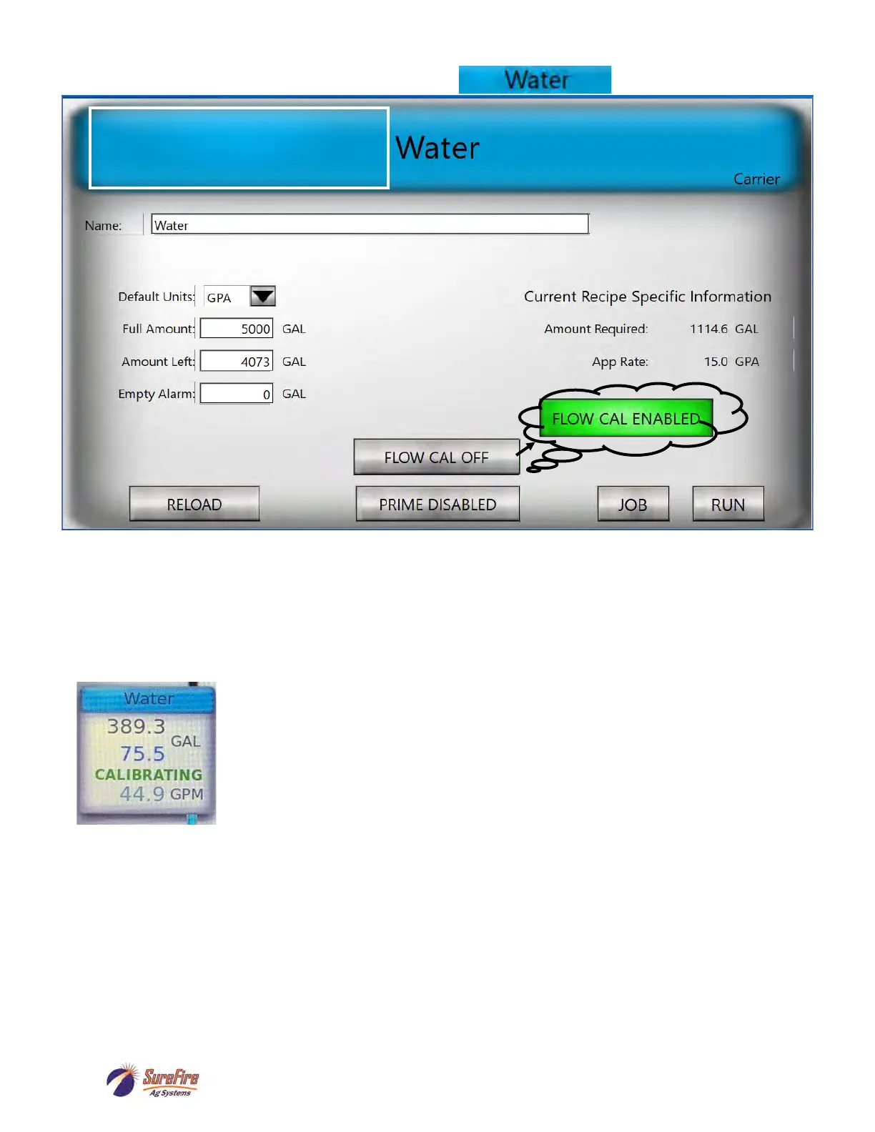 When the batch is completed the Carrier Flow Cal (Pulses/Gal) for that carrier will