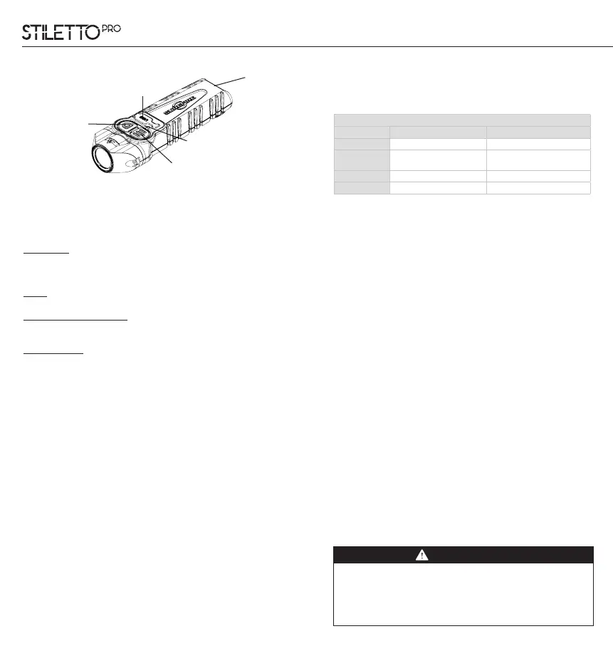 output buttons. The STILETTO must be off to change modes. The PRIMARY and TACTICAL