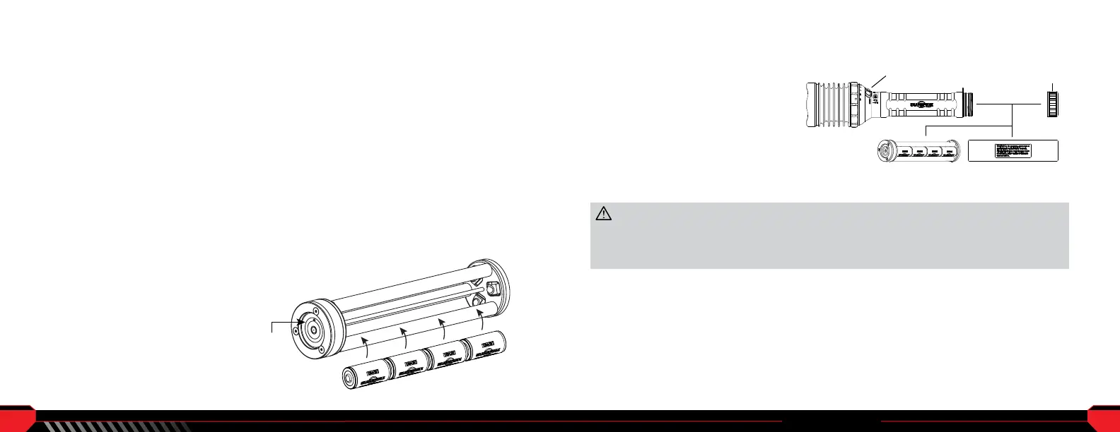 1. Insérez la pile lithium-ion ou le bloc de pile 123 entièrement chargé dans le corps de la lampe,