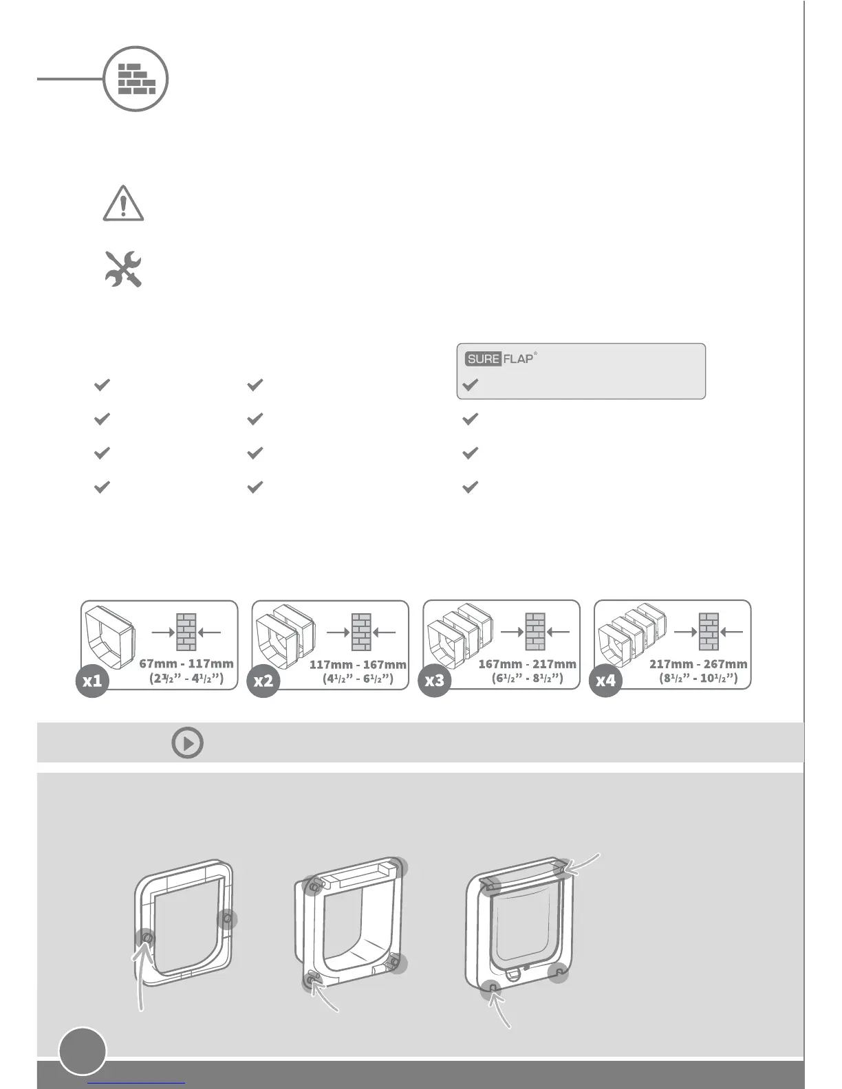 the Cat Flap. The existing tunnel is 70mm (2 ”) long. Each tunnel extender adds 50mm (2”) to