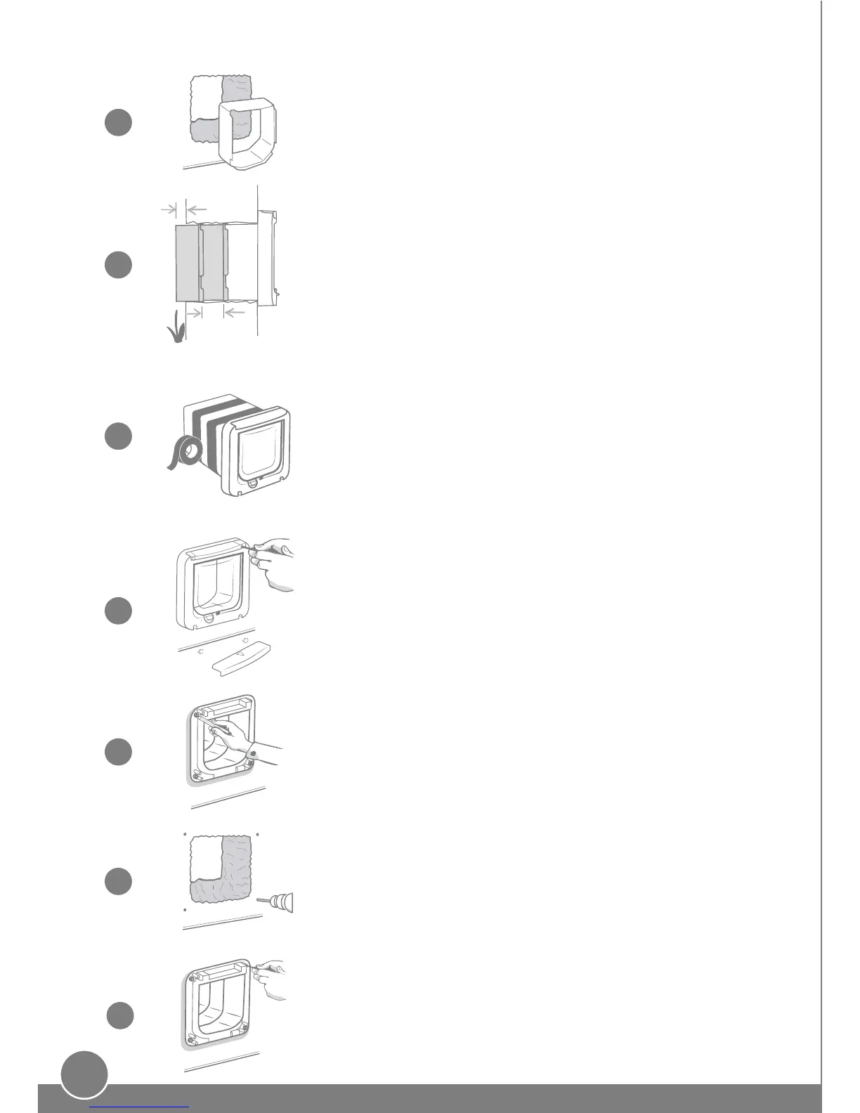 Schrauben die Katzenklappe an die Wand an. Siehe dazu das