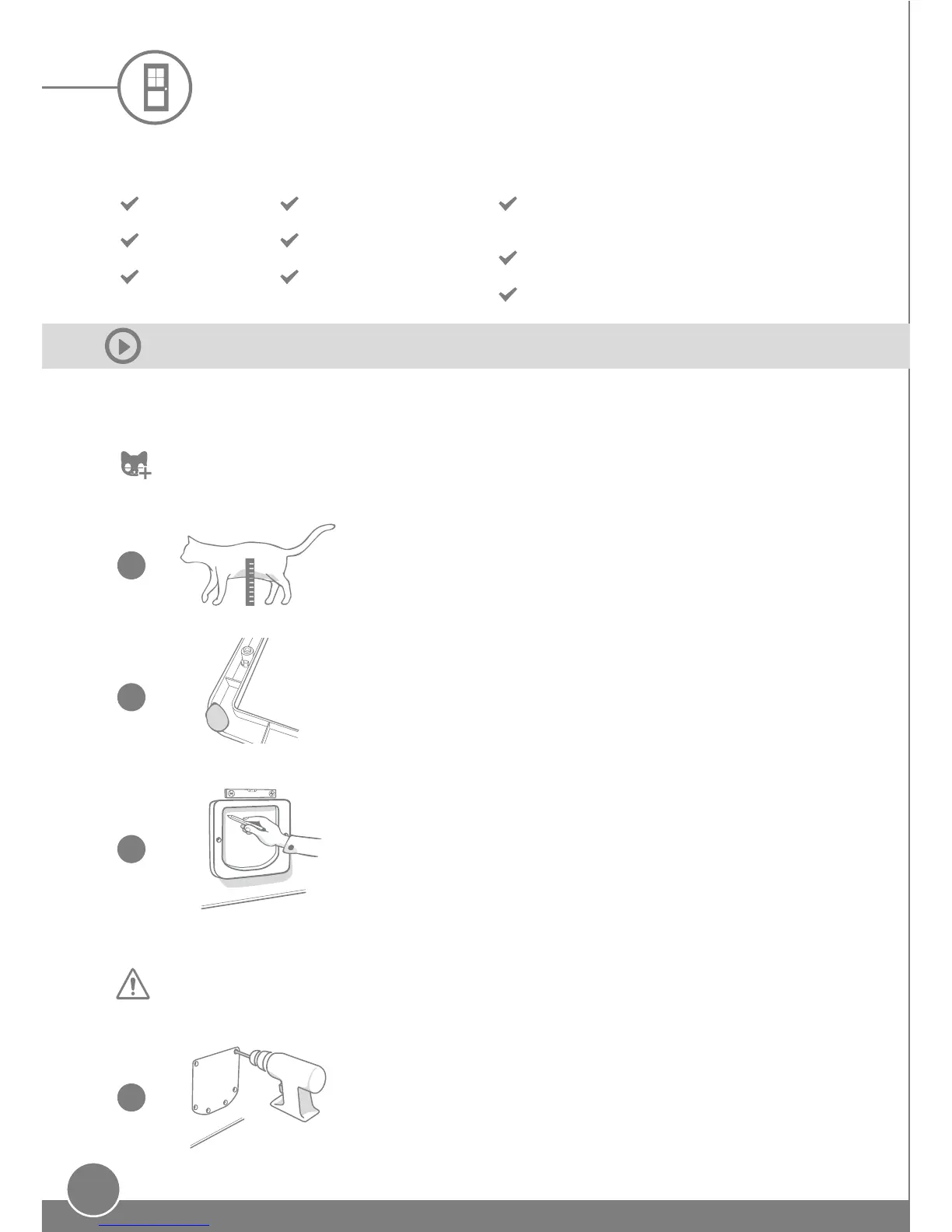 de votre ou de vos chats dans la chatière avant de l'installer, voir page55.