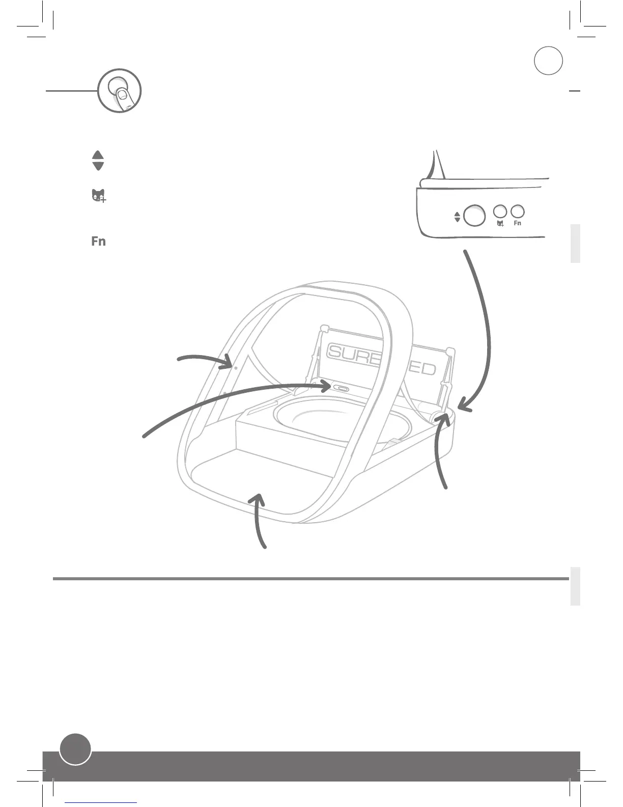 Openen/sluiten: hiermee kunt u de voerbak openen om deze bij