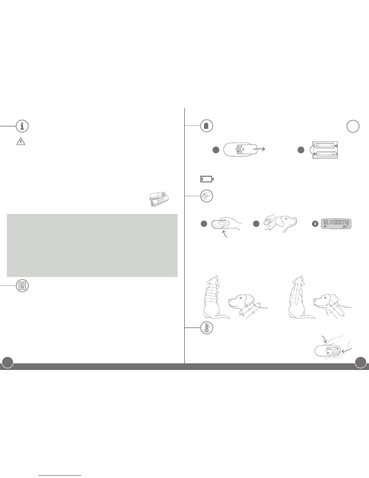 To locate the microchip, hold the reader close to the animal's neck, then move it in either one of