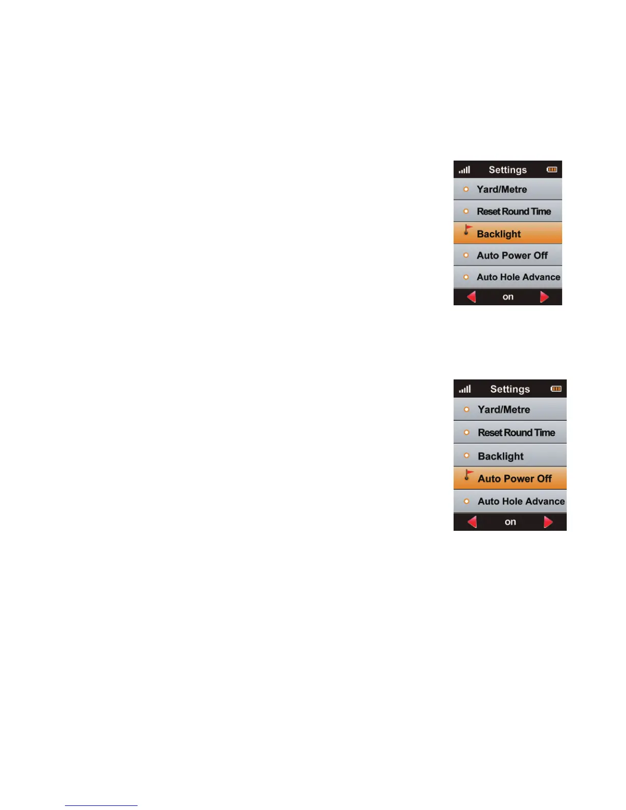 backlight duration. “On” means that the baclight will