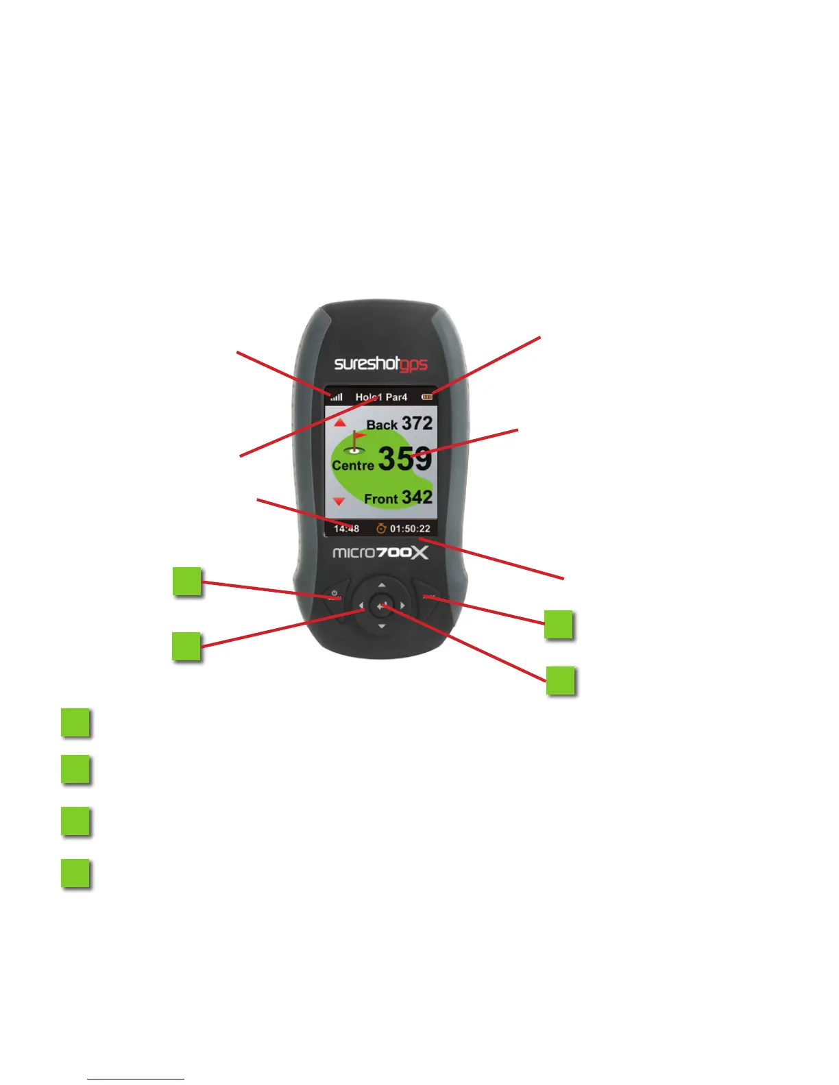Enter Key: To conrm menu selection, desired course, mark shot distance.
