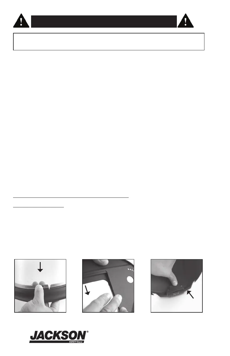 6. Ce produit doit être utilisé uniquement avec une fenêtre rabattable, une visière et un harnais de tête appropriés de marque Jackson.