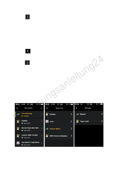 playlist,delete, view songs and other information. Slide your finger