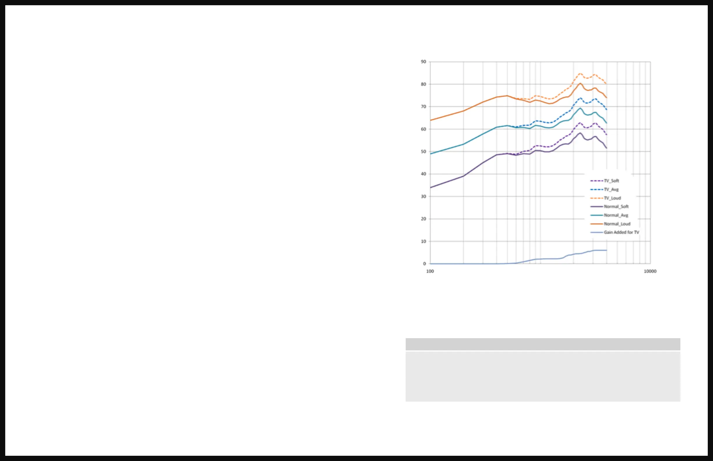• Increasing low frequency gain (200, 500, 1000Hz) to “normal” environment adds “fullness” to audio