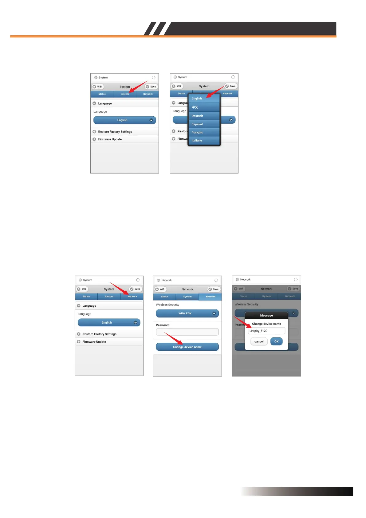The factory default device name is ex. “Linkplay_XXXX”,you can click the “Network” tab to “Change