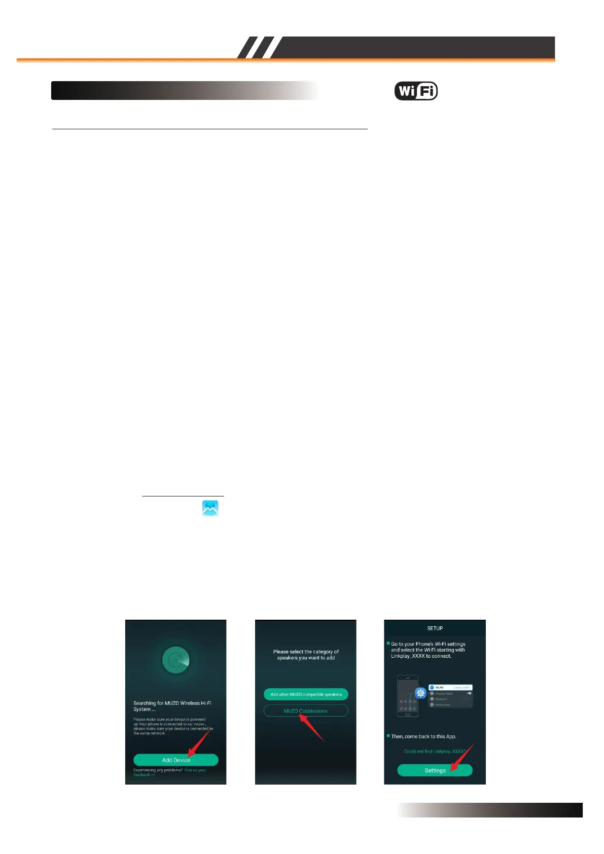 CONNECT YOUR WI-FI SPEAKER TO YOUR NETWORK VIA MUZO PLYAER APP.