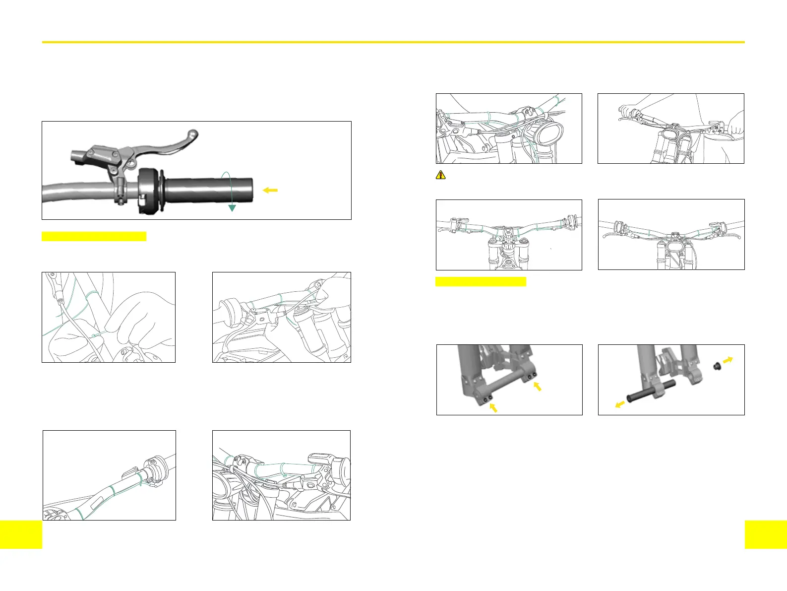 Note:After the cables fixed, rotate the handlebars to test and ensure that all wiring harness is