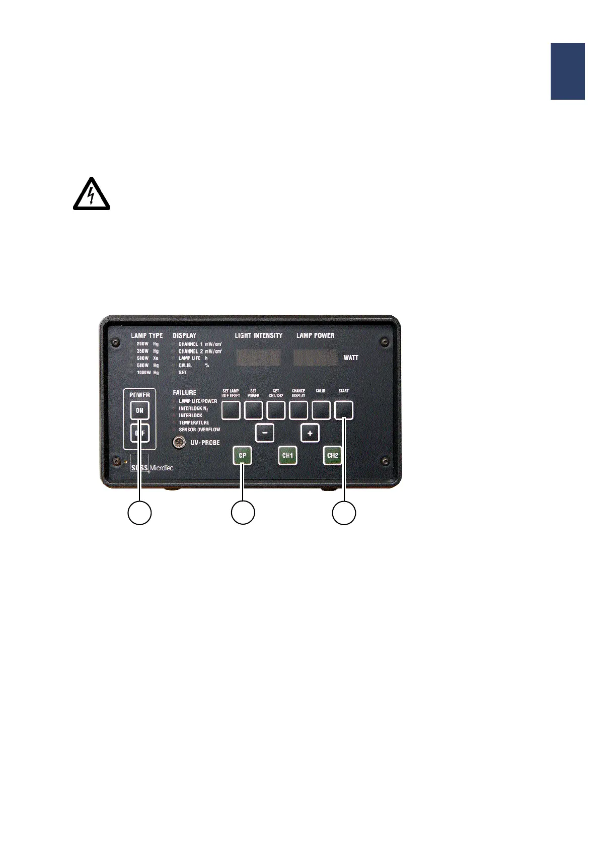 shutter is open) and POWER of the exposure lamp