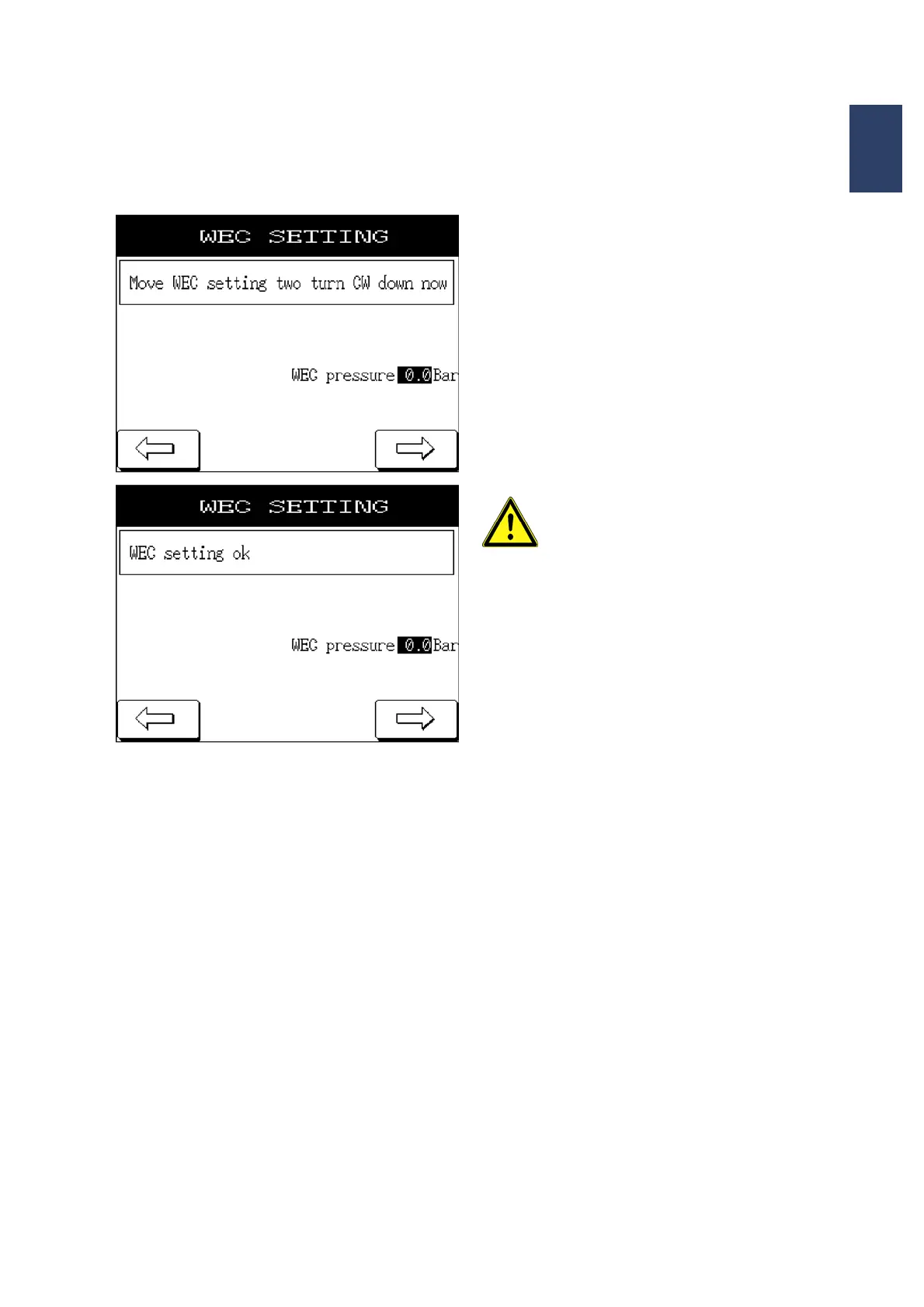 The set value is indicated in the WEC SETTINGS