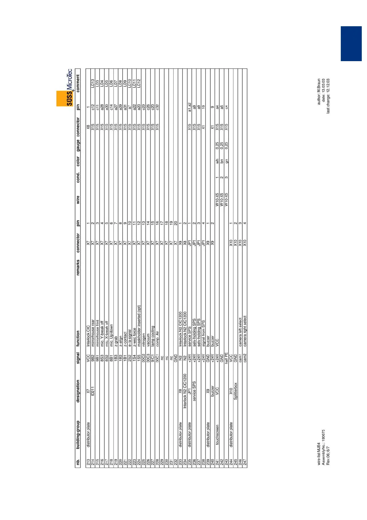 Wire list, Rev: 06, Sheet 6 of 7