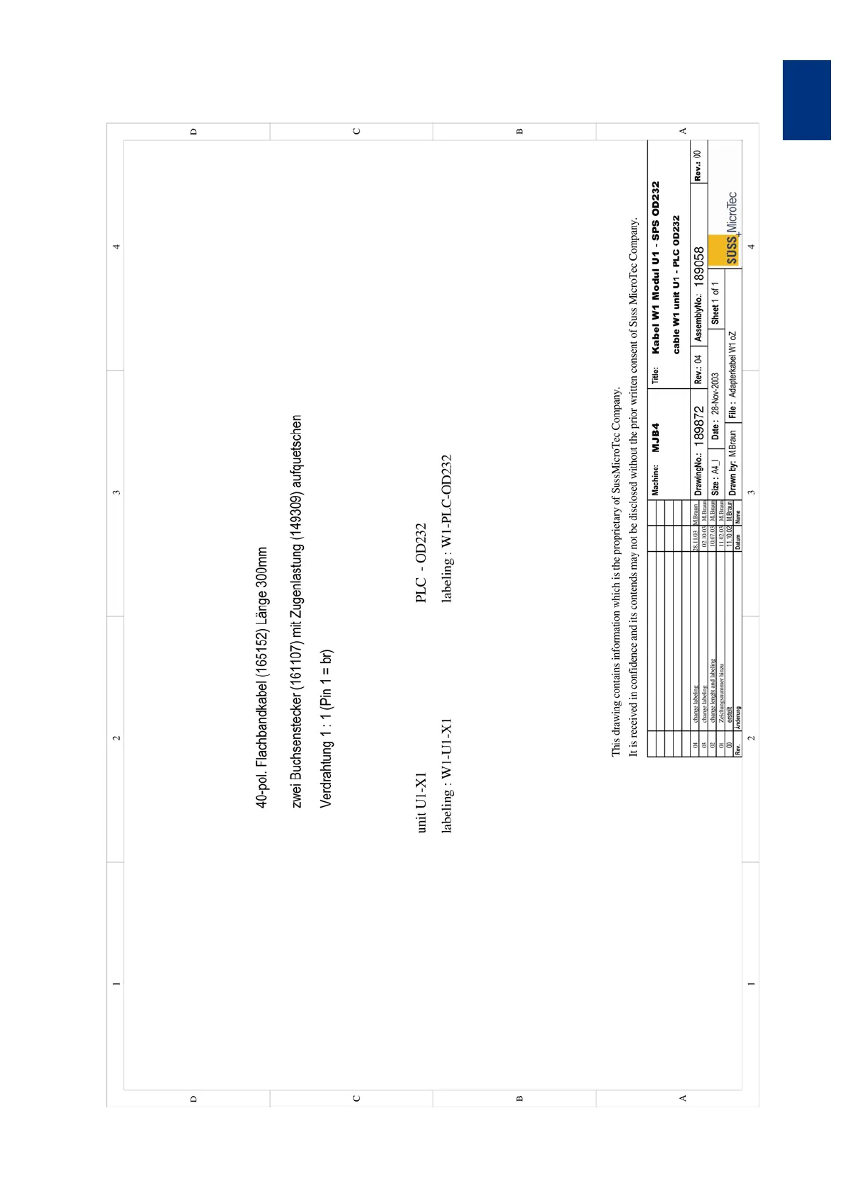 189872 - Cable W1: Unit U1 - SPS OD232