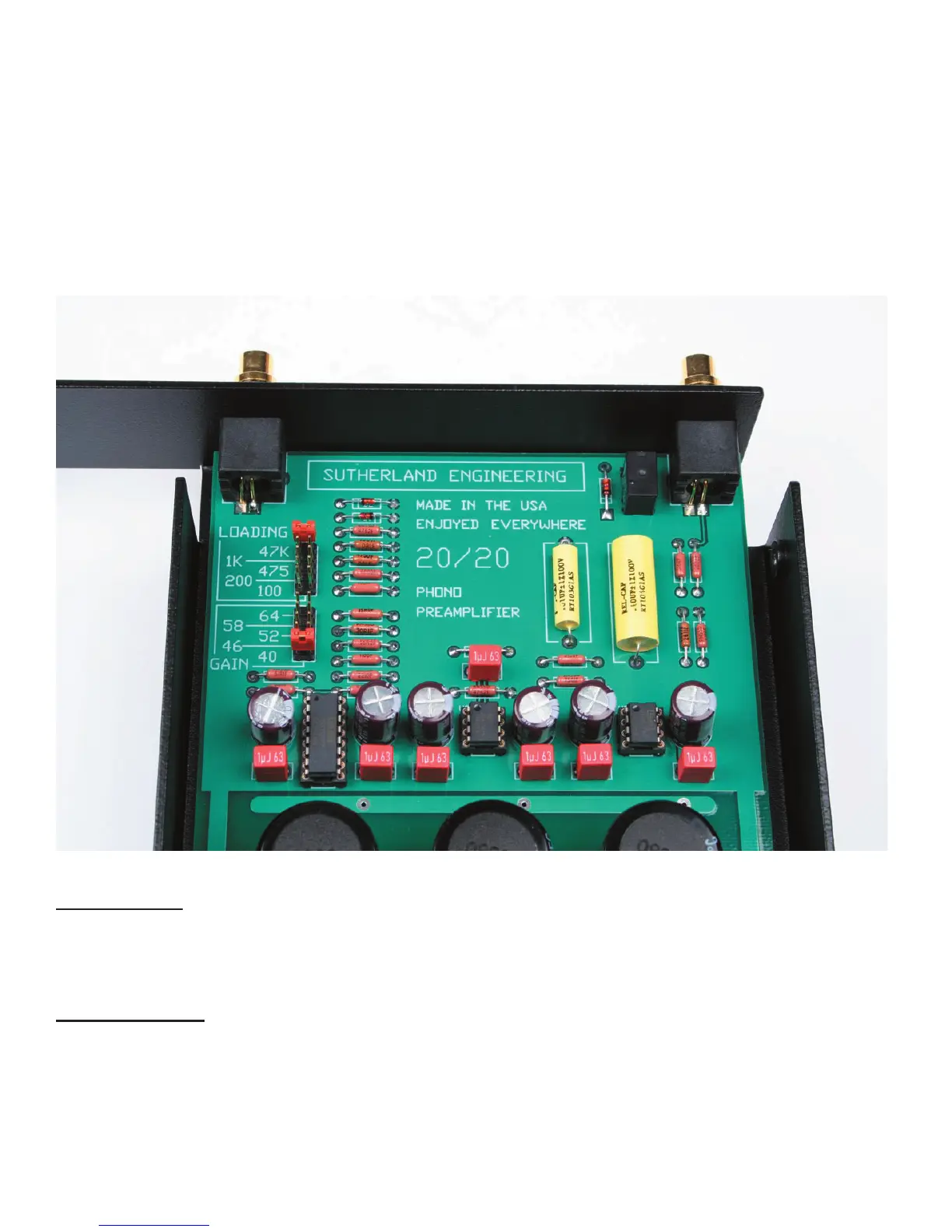settings. The 20/20 is shipped with a cartridge loading of 100 Ohms and a gain of 60 dB. If you wish to