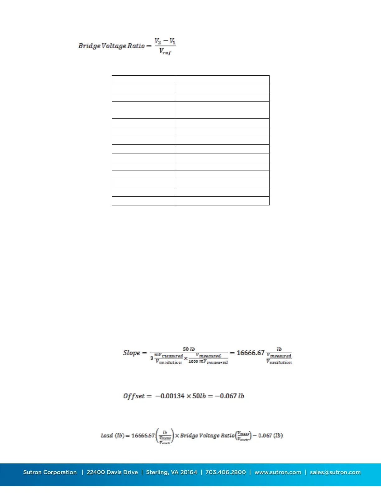 Convert this ratio to a load by following the Slope and Offset calculation example below.